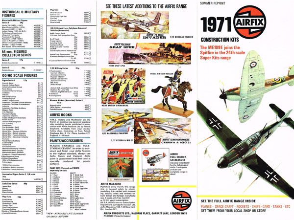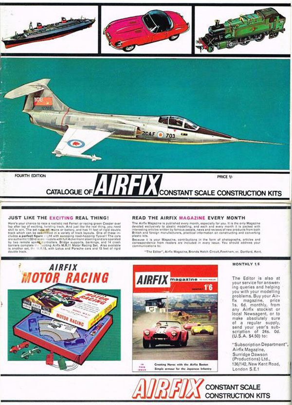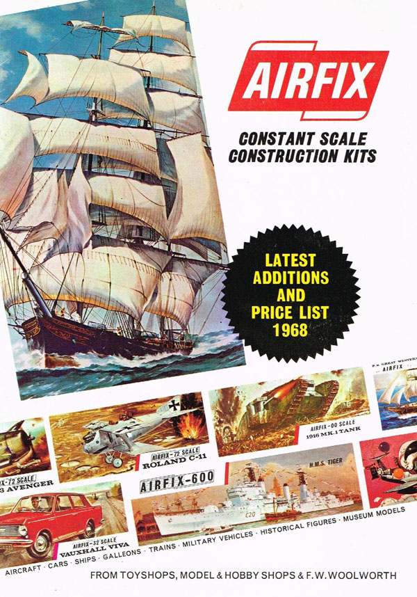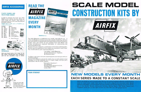 This catalogue was slightly unusual in that it seems to have lasted two years. It was announced in the April 1967 Airfix Magazine. In the May 1968 Airfix Magazine the “new catalogue”, 1s 6d (7.5p) was announced and included a supplement listing the 1968 releases.