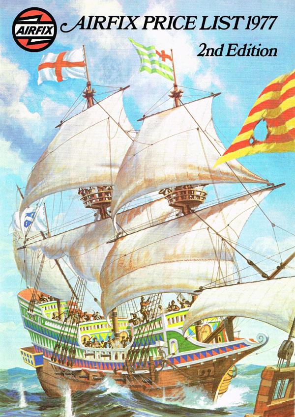 Printed in January 1977 (90049-8), there were two Price List leaflets, the 1st and 2nd Editions, neither of which bore catalogue numbers. Both referred to the catalogue as the “14th” Edition. Ken McDonough’s Stuka painting (see CS33) dominated the portrait-mode cover of the 1st Edition A4 size leaflet.