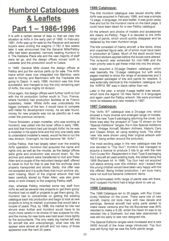 Humbrol Part 1 - 1986-1996, appeared in CS83 along with further artwork.
